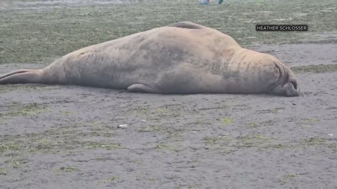 - Video shows an elephant seal on Bainbridge Island swallowing shark whole