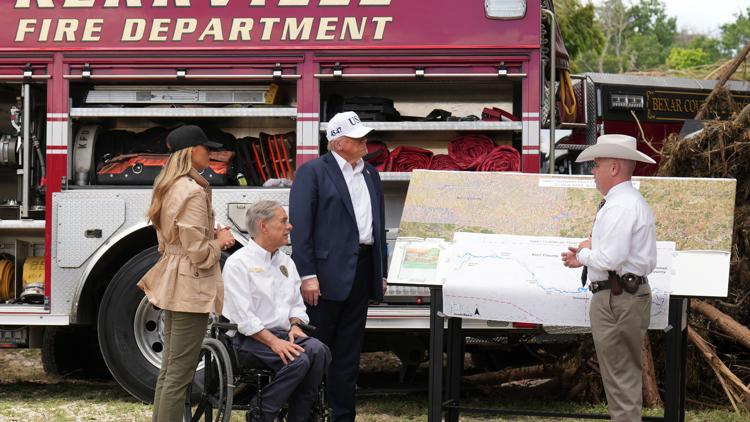 Trump tours Texas flood sites and defends officials amid mounting questions about response